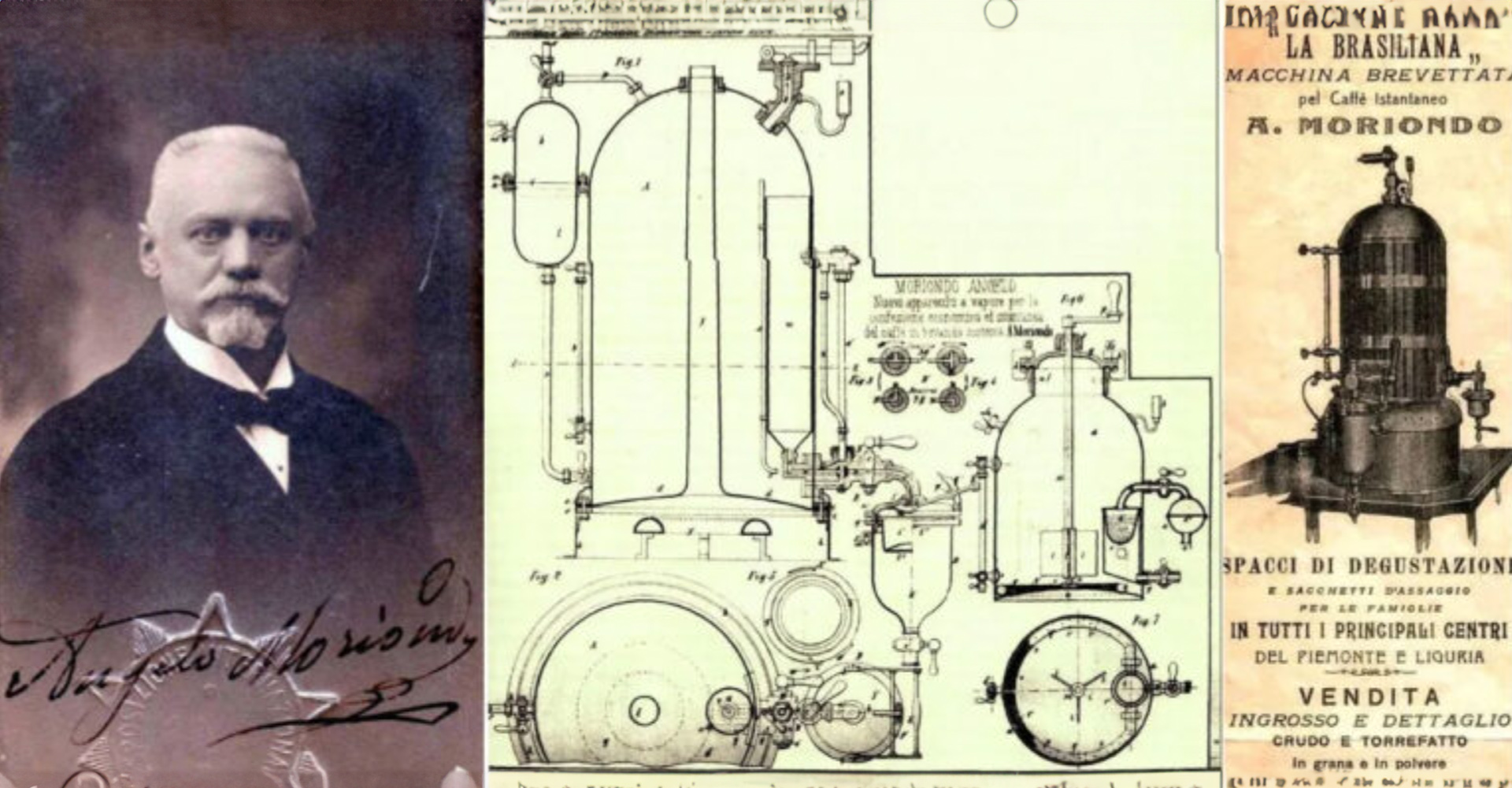 Brevettata nel 1884 come dispositivo per fare il caffè espresso, presentata in occasione dell’Esposizione Generala al Valentino, nata nella caffetteria dell’Hotel Ligure, in piazza Carlo Felice, di fronte alla stazione di Porta Nuova da padre certo Angelo Morimondo: ecco la macchina da caffè.