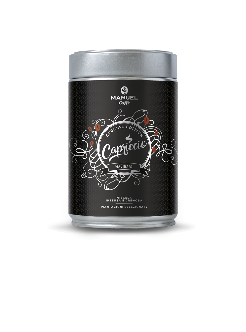 Con il 70% di Arabica, Capriccio vanta un intenso aroma di cacao, caramello e frutta secca, e